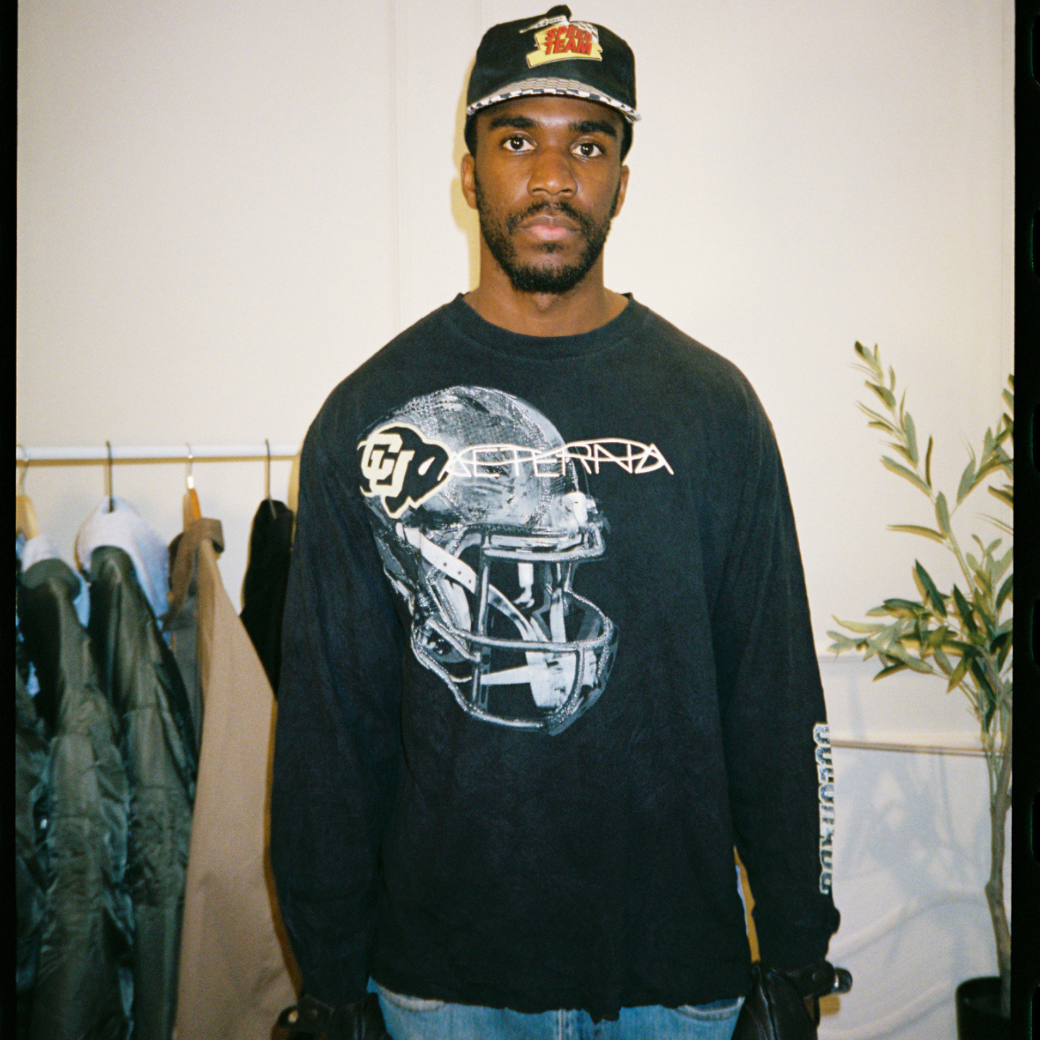 A one-of-one reworked vintage sports piece merging bold NCAA energy with modern Aeterna design.