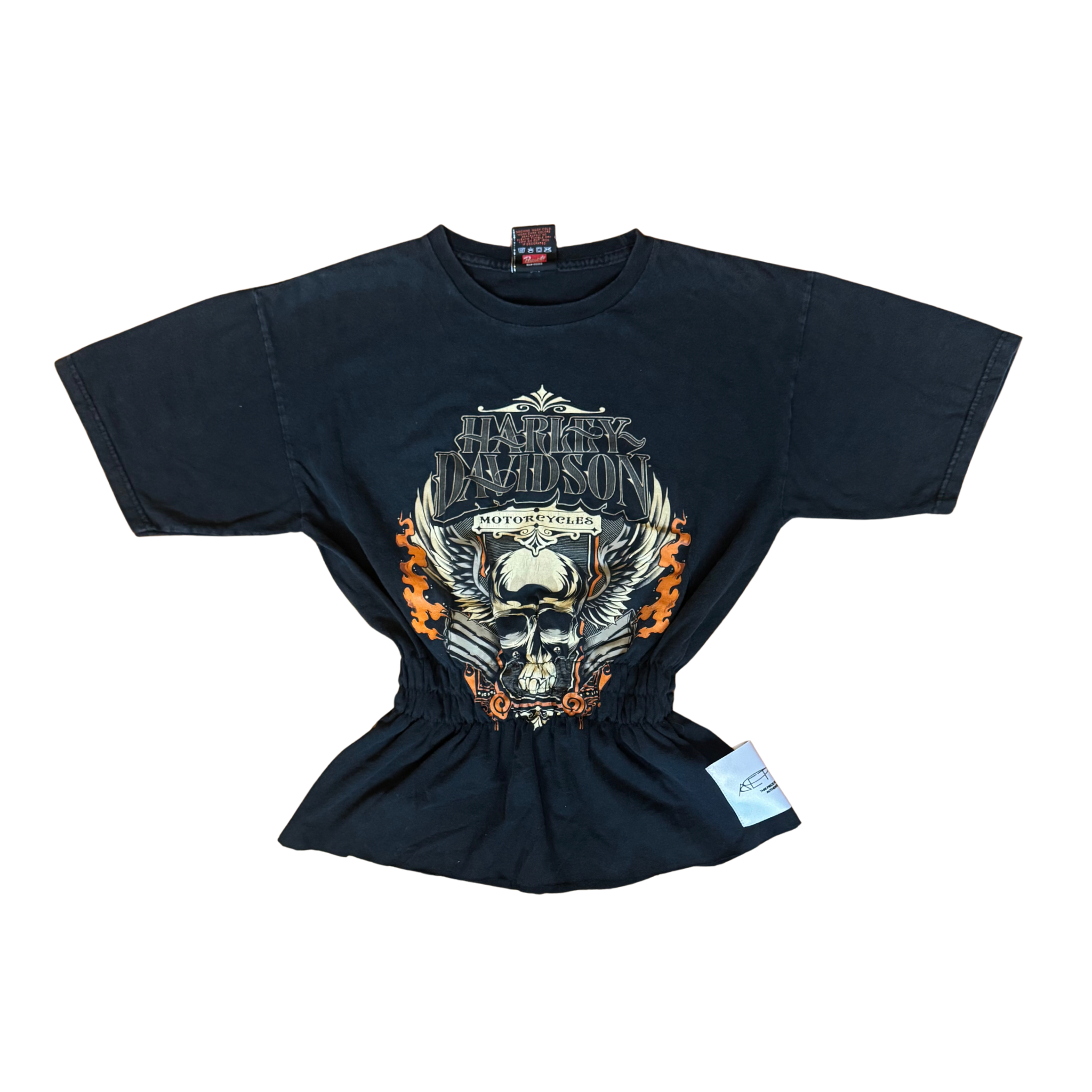 Cropped cinched waist single stitch tee, Skull and Flame Graphic