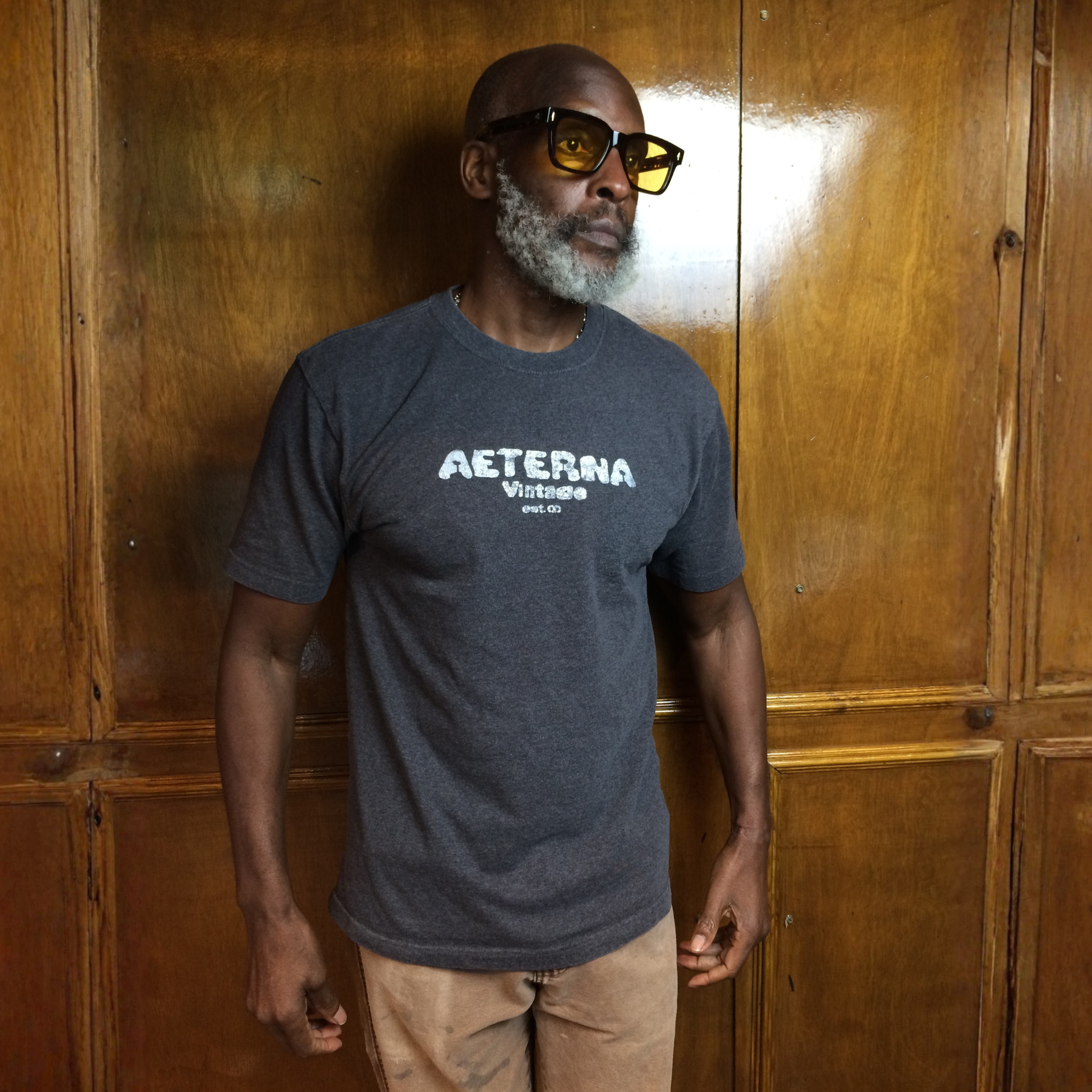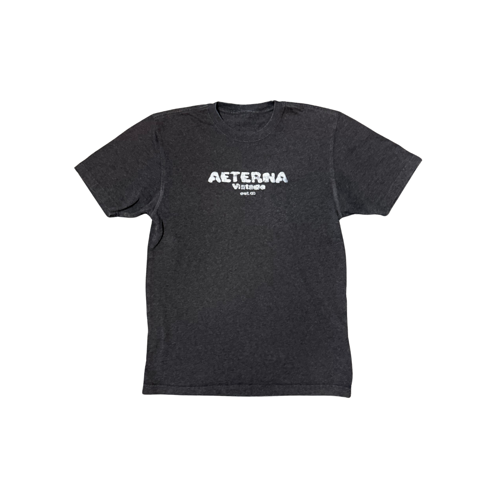 Authentic early-2000s vintage T-shirt in charcoal grey, hand-printed in-house by Aeterna with the signature logo at the chest. Set on a soft yet durable cotton base, finished with a subtle worn-in print that sits naturally within the fabric.